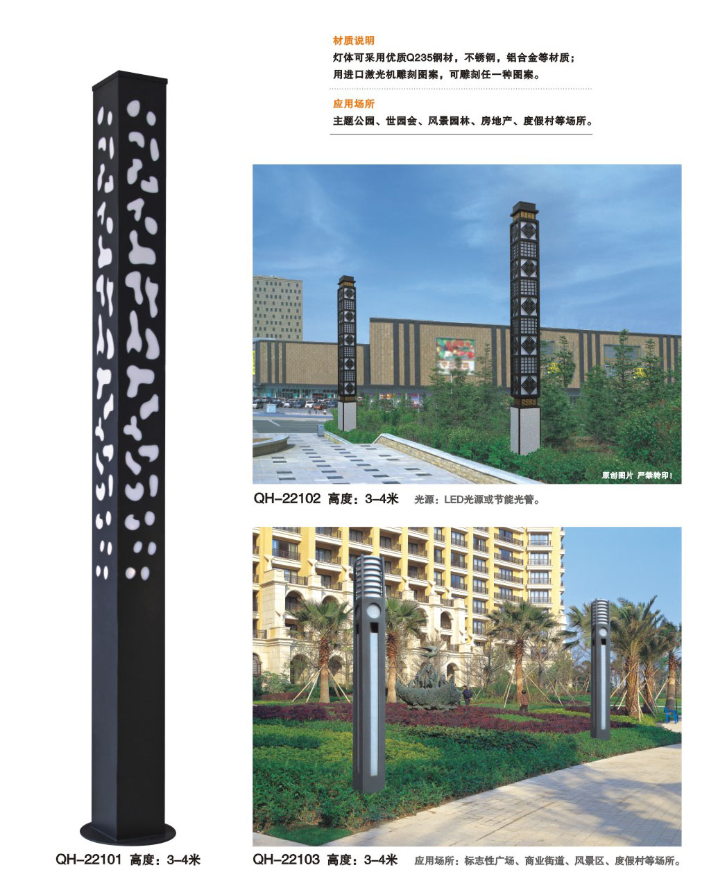 用途:景觀燈適用市政工程、園林亮化工程和公園、開發(fā)區(qū)、別墅區(qū)、廣場等戶外路燈照明工程