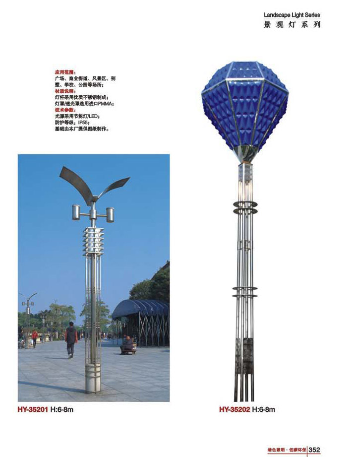 用途:景觀燈適用市政工程、園林亮化工程和公園、開(kāi)發(fā)區(qū)、別墅區(qū)、廣場(chǎng)等戶外路燈照明工程