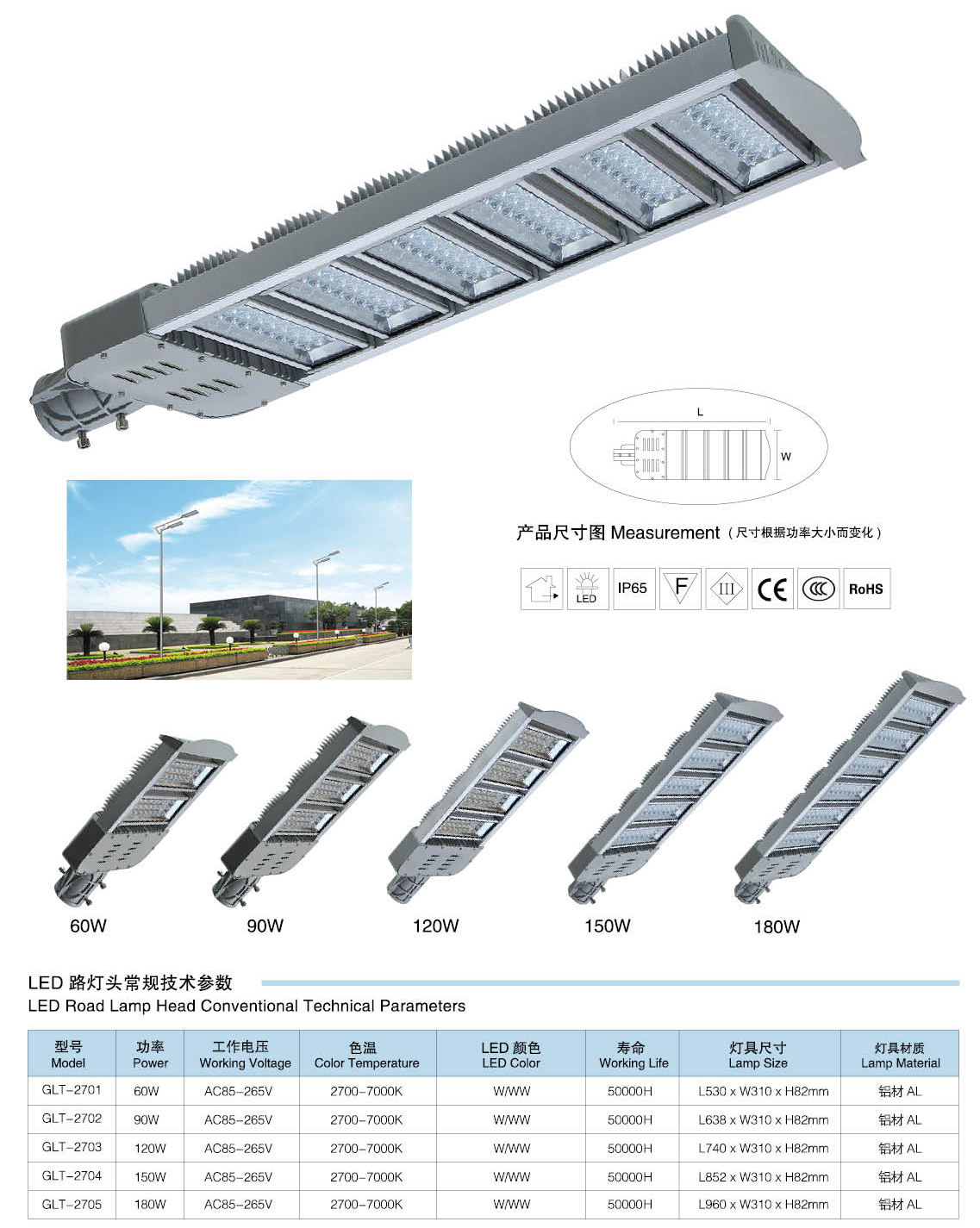 燈具參數:60W、90W、120W、150W、180W