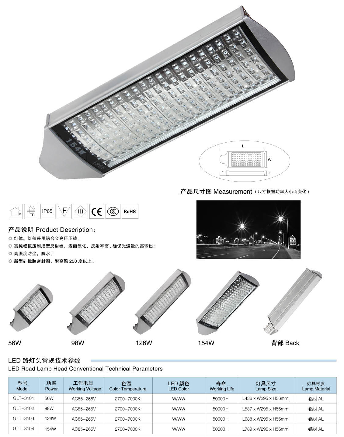 燈具參數:56W、98W、126W、154W