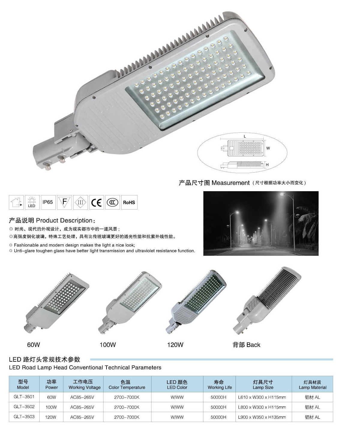 燈具參數:60W、100W、120W