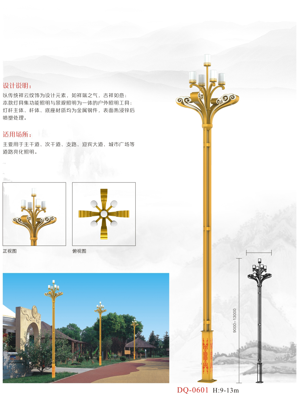 12米八叉九火玉蘭燈廣場道路大型景觀燈廠家led玉蘭燈定制